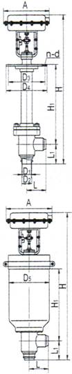 ■ 气动薄膜低温角型调节阀型号